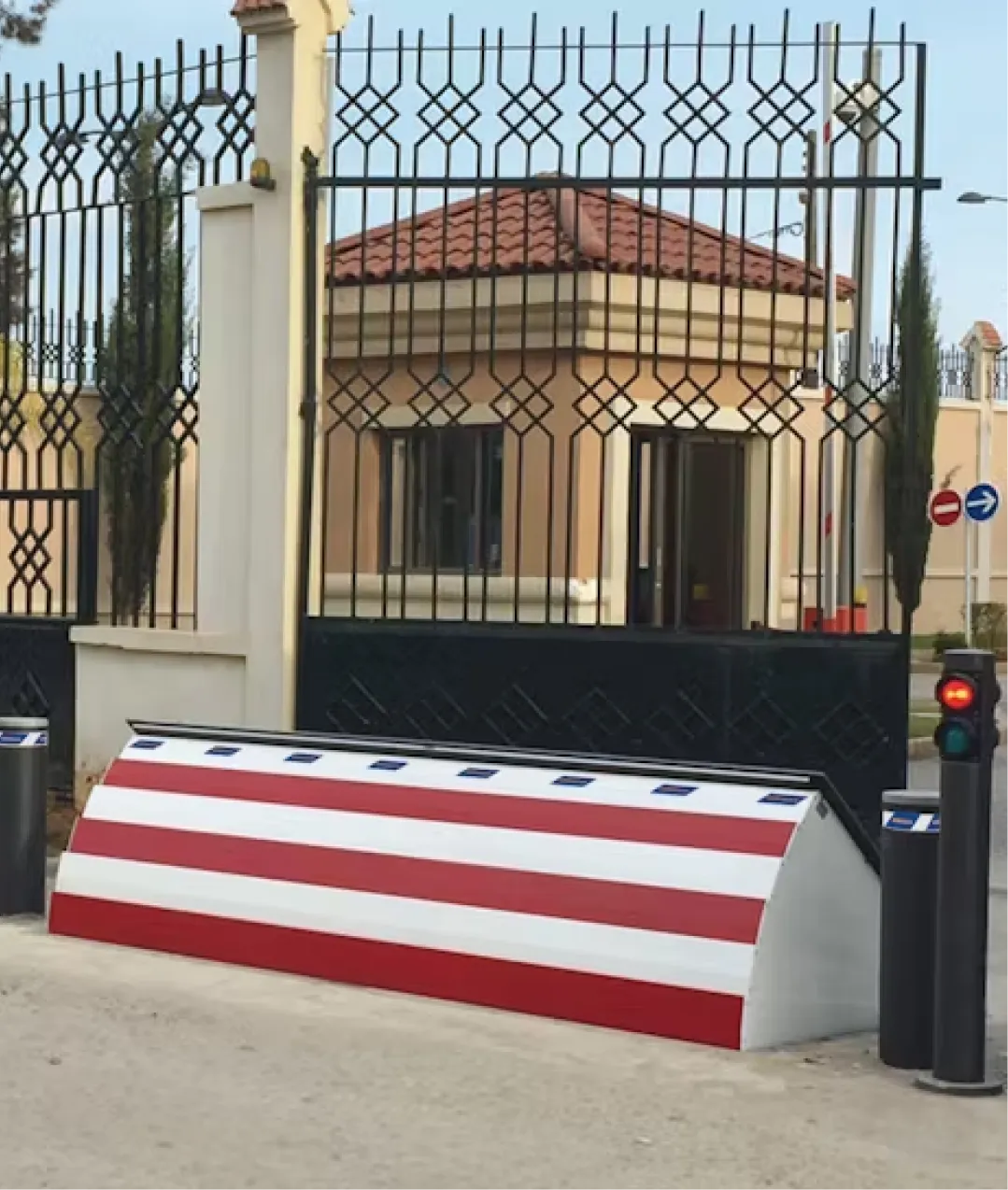 Rendes forgalmi helyzetben az útzár a talajszintbe húzódik vissza, de vészhelyzet esetén gyorsan kitolható, így hatékonyan megállítja a behajtó járműveket.